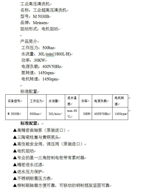 產(chǎn)品名稱:工業(yè)級超高壓清洗機(jī)M5030B